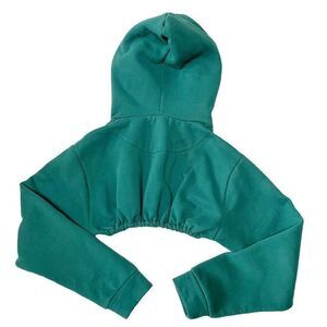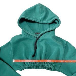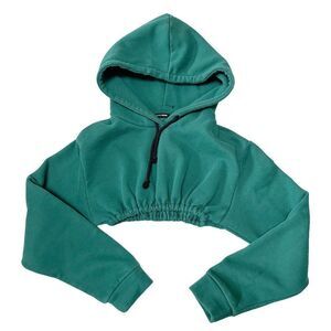 Fashion Nova teal cropped elastic waist pullover hooded sweatshirt size XS