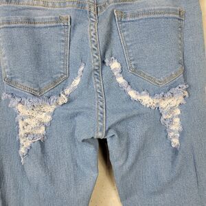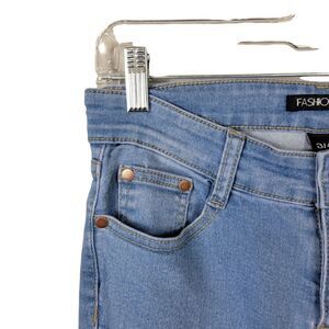Fashion Nova Distressed Skinny Jeana. Light Blue Wash 3/4#012