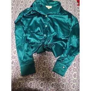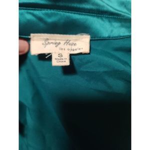 Size SMALL in SATIN EMERAL GREEN BUTTON UP SHIRT