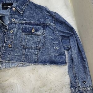 Fashion Nova's Distressed Designer Style Crop Jean Jacket