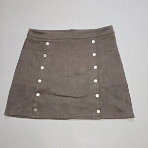 Fashion On Earth Faux Suede Mini Skirt Front Buttons Pockets Large Beige FE22F87