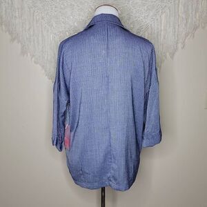 Fashion On Earth Stripe Double Button 3/4 Sleeve Navy Blue Blazer Medium