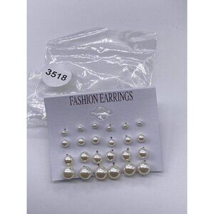 Fashion Pearl Stud Earring Set Womens 12 Pairs White Round Jewelry Lightweight