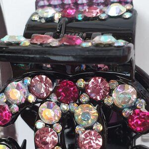 Fashion Pink Crystals Claw Long Hair Tie Girl Women Casual Formal Accessory Gift