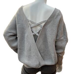 Fashion Pullover Sweaters Gray Cross Back Hollow-Out Sweater XL