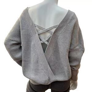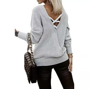 Fashion Pullover Sweaters Gray Cross Back Hollow-Out Sweater Size L