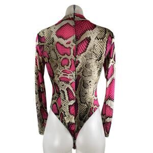 Fashion Queen Women's Multicolor Snake Skin Long Sleeve Mock Neck Bodysuit Top Size S