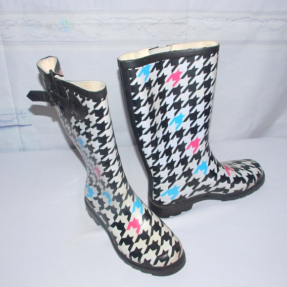 Fashion Rain Boots Snow Boots Size 6 Mid-Calf Low & Fast Shipping. This pair is in VG conditionVery Colorful and will keep you warm and dry and with the chunky heel and soul keep you upright. Don't pay full or collector prices when you can buy from us for less it's the Fairy way.