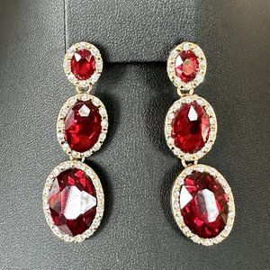 Fashion Red Enamel Gold Tone Rhinestones Drop Dangle Post Earrings