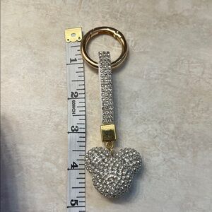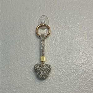 Add a touch of elegance to your accessories with this stunning silver key chain/bag charm. The gold accents provide a luxurious finish, perfect for any occasion.