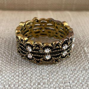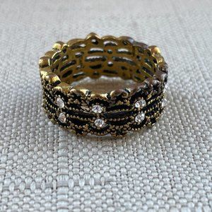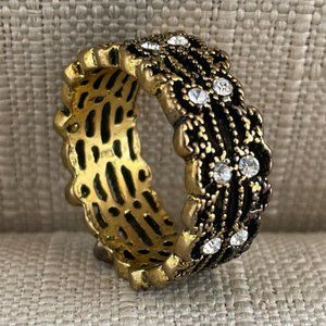 Fashion Ring Gold Tone Antique Style Crystals Accent Ring Size 10.5