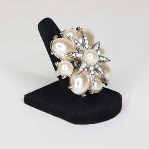 Fashion Ring Size 5 Faux Pearls Faux Diamonds Star Design Faux Silver Band