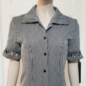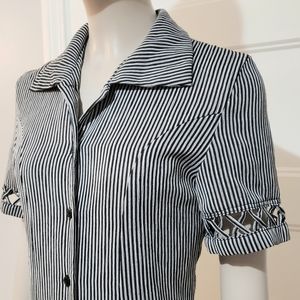 Fashion Room 1126 Button Up Midi Dress Womens M Collared Stretch Striped