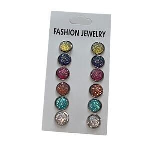 Fashion Round Earring Set Sparkling Jewel Tones 6 Pair Spring Summer Gifts
