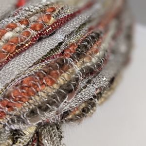 Textured fabric makes this beautiful scarf a unique find. Flattering color palette goes well with casual pieces or something a bit more dressy. Boho vibe.