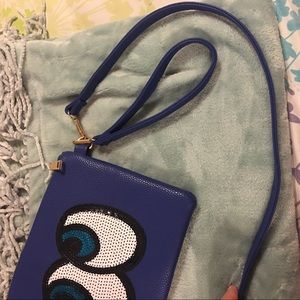 Sequin Eyes Blue Crossbody/Clutch. Eyes are made of sequins. Comes with a crossbody strap or clutch handle. Inside has zipped accessory pocket and two open accessory pockets. Measures aprox. 11.5 x 7.5 inches. New without tags. Never worn!! Super cute for daily wear or a night out ✨