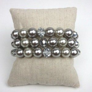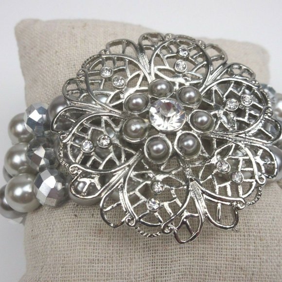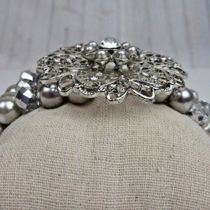 Description: Stretchy bracelet with silver beads and flower.