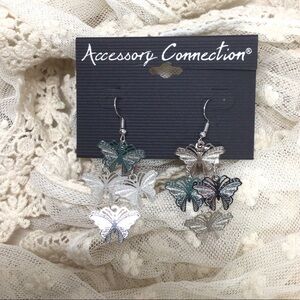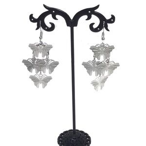 Fashion Silver Tone Lightweight Butterfly Filigree Chandelier Dangle Earrings.