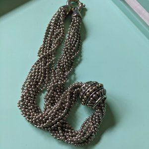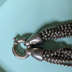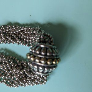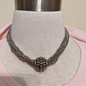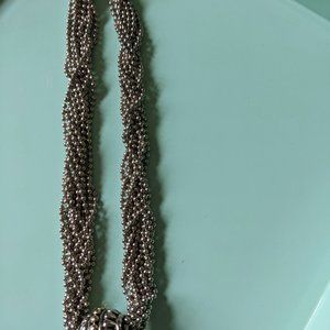 Fashion sliver tone necklace is in excellent condition. Very well made. Heavy weight. A golden line on the charm.