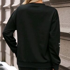 Fashion Solid Color Rhinestone Bow Decor Round Neck Casual Women Sweatshirt
