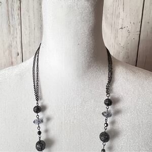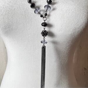 Fashion Statement Beaded Tasell Pendant Silver Tone Necklace