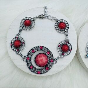 Material of the bracelet can include: glass beads, plastic spacer, rhinestone stopper