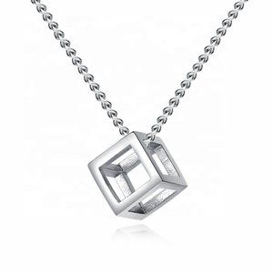 Fashion Style Simple Square Hollow Out Small Box Pendant Necklace, N90201P157