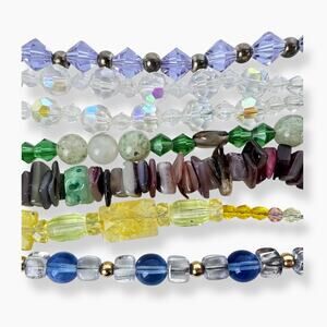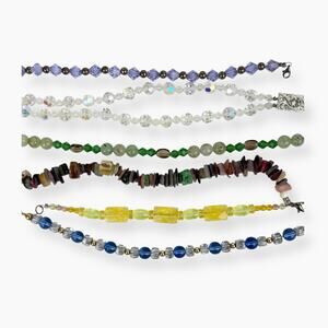 Pre-owned. Nice condition. Some wear on silver tone clasp and some natural stone beads have specks of discoloration - might be natural inclusions in the stone. Well cared for with only light signs of handling. Overall beautiful bracelets ready for you to wear.