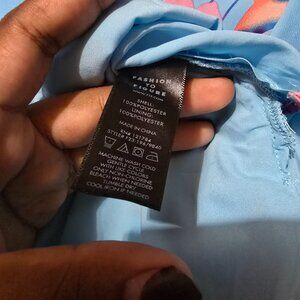 Fashion To Figure Sky Blue High-low Midi Dress W Pink Floral Design Plus Size 0