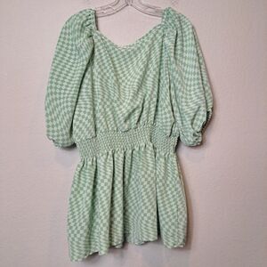 Fashion Union ASOS Plus Checkerboard Smocked Waist Blouse Puff Sleeve Size 20
