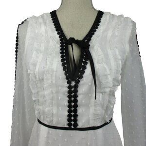 Fashion Union Swiss Dot Dress White Size 4 Romantic Ruffle Long Sleeve Soft Girl