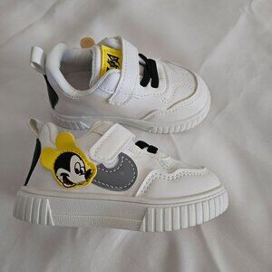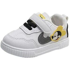 Fashion Unisex Kids White Gray Yellow Mickey Mouse Applique Sneakers Size 21