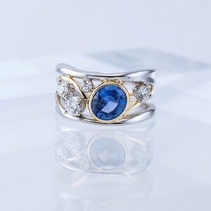 Fashion Wave Stackable Beautiful Royal Blue Zircon Ring for Women, PD213