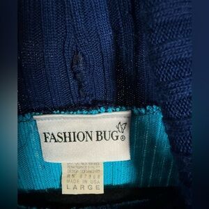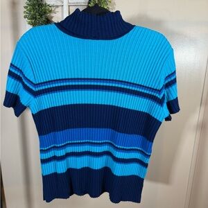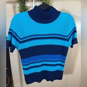 Fashion bug vintage mock neck sleeveless striped sweater size Large Blue