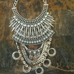 Fashion choker gypsy boho silver necklace long