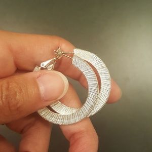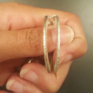 These shiny hoops are the perfect addition to any outfit! They do not have actual gems but are very shiny and look great! They have a slightly ridged appearance and they have a clip that goes over the post so that when they are in your ear they don't come loose! (I have lost a couple earrings at weddings before because they weren't secure enough to withstand the dancing ??)