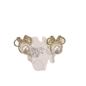 Stunning Minnie Mouse Fashion shape Gold plated pearls Clear White faux Diamond Cubic Zircon Crystal Stud earrings