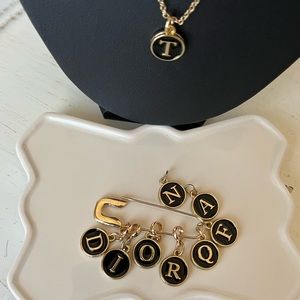 Fashion gold tone monogram double sided black enamel initial pendant necklace