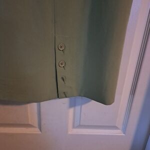 Fashion green skirt size 10 cute button detail on the bottom in the back side to side measurements is 16" top to bottom hem is 23.5 " if you have any questions please message me bundle for bigger deals
