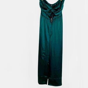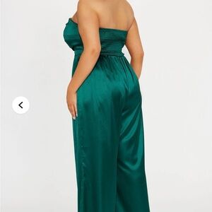 Fashion nova about your love satin jumpsuit strapless hunter green 1x new nwt
