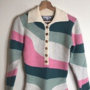 Fashion nova heather printed sweater romper pink combo outfit size small cozy