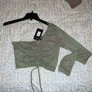 Fashion nova sage crop top one shoulder size M
