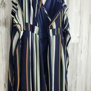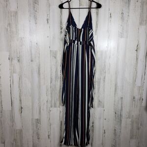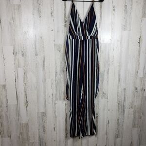 Fashion nova sleeveless colorful striped sheer jumpsuit size medium