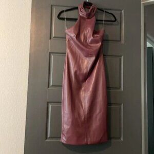 Fashion nova women’s faux leather halter midi dress in burgundy size small NWT