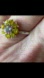 This ring has eight yellow stones and a center iridescent stone. It looks like a spring flower.