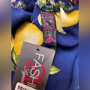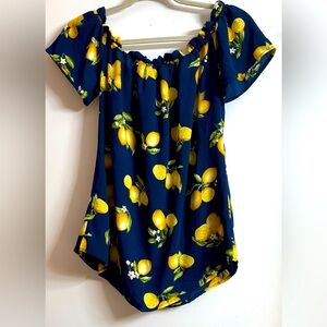Fashion signature 2U Lemon Print Milkmaid Top Womens Blue Rockabilly Retro. Sz L