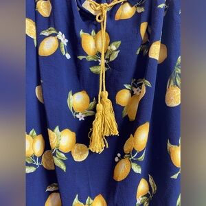 Fashion signature 2U Lemon Print Milkmaid Top Womens Blue Rockabilly Retro. Sz L 🍋 blue yellow new
