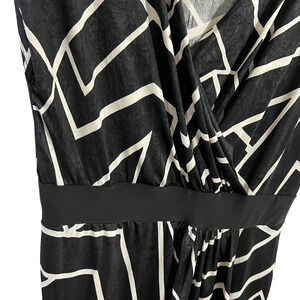 Fashion to Figure Black and White Geometric Print Blouse Plus 1X Draped V Neck