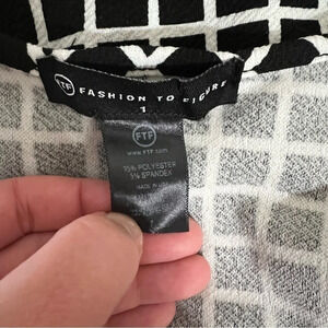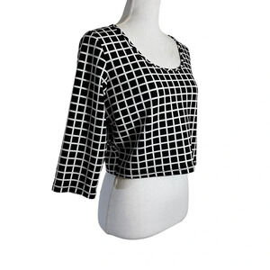 Fashion to Figure Black and White Square Pattern Cropped Top Plus Size 1X Blouse