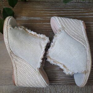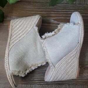 • Style: Natural - These wedge sandals feature a stylish open-toe design and a textured fabric upper that adds a unique touch. The frayed edges give them a bohemian flair, while the comfortable wedge sole ensures all-day wearability.